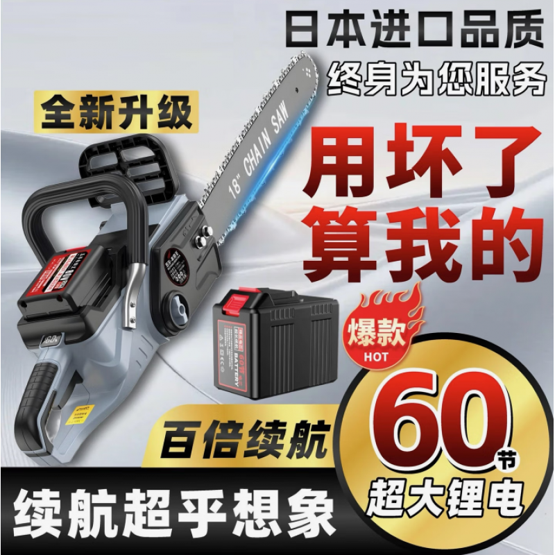 Japanese imported high-power cordless handheld chainsaw for home use