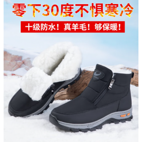 Old Beijing cloth shoes winter men's wool high-top warm cotton shoes waterproof soft-soled anti-slip shoes for middle-aged and elderly fathers